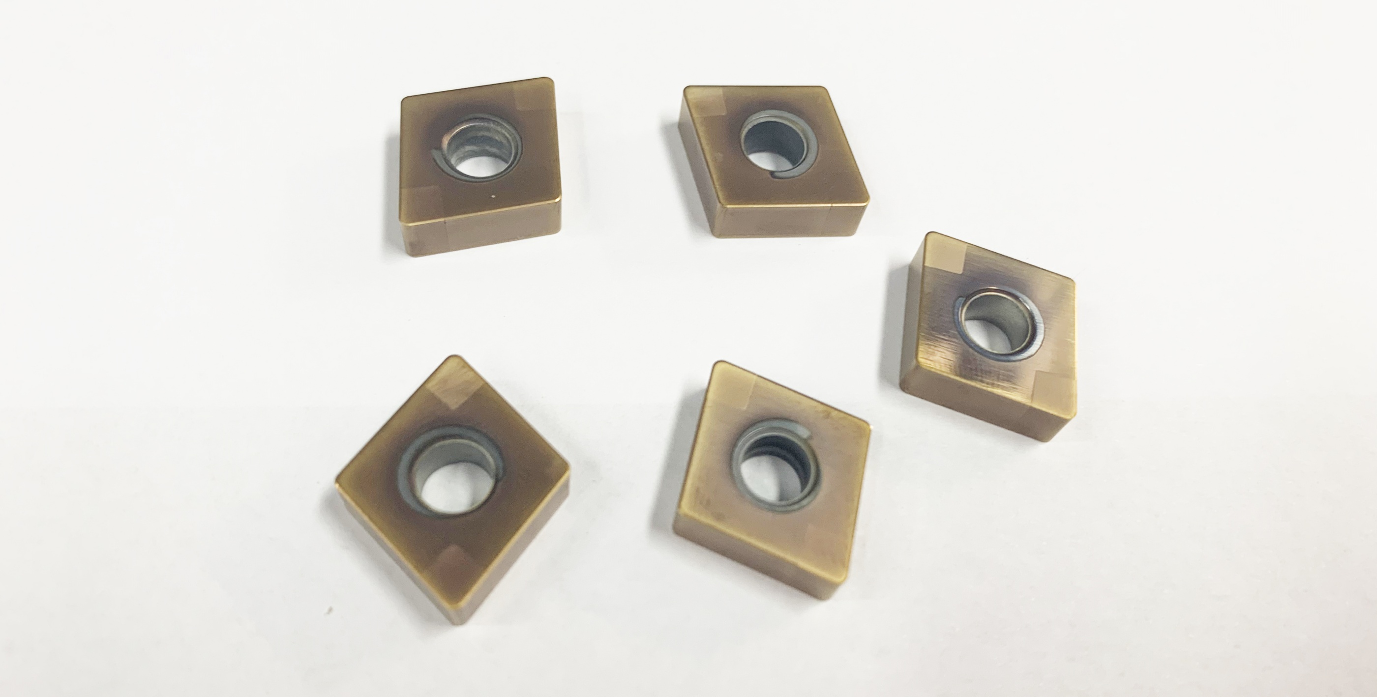 華菱目前可提供五種涂層供大家選擇,它們分別是C20(金黃色)、C25(淺灰色)、C65(古銅色)、C03(重古銅色)和C75(灰褐色)。不同的顏色代表不同的性能,所適合的工況也不同,其中C20(金黃色)是一個材質性能適中的選擇,連續加工和斷續加工均可使用;C65(古銅色)和C03(重古銅色)適合超高速加工和連續加工,可以延長刀具的壽命;C75(灰褐色)適合中低速狀態下的切削和強斷續加工工況。